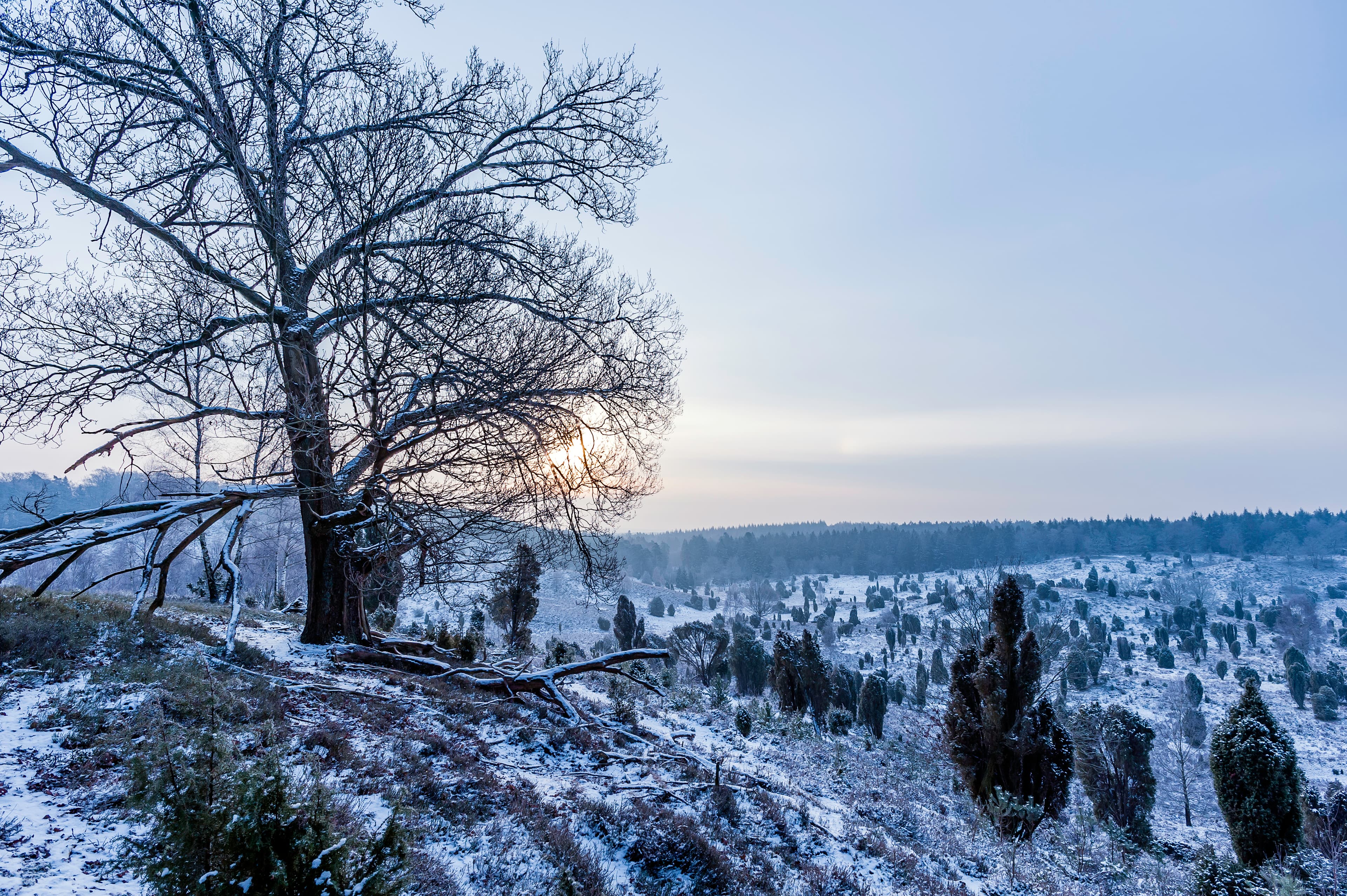 Die kühle Winterluft lädt zum tiefen Durchatmen ein, die Wacholderbüsche und die Heidepflanzen sind mit weißem Raureif bedeckt und vielleicht knirscht der Schnee unter Ihren Schuhsohlen. Faszinierend ist vor allem die Stille, die Ihnen die winterliche Heidelandschaft bietet.