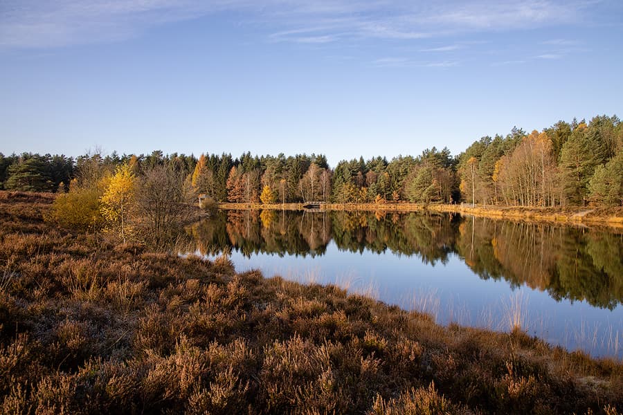 Ein malerisch gelegener Teich am Rande einer kleinen Heidefläche ist etwas Besonderes in der Lüneburger Heide. Dazu sanfte Hügel, kleine Birken und Kiefern. Rund um Angelbecksteich und durch die angrenzende Heidefläche führt ein kurzer, barrierefreier Rundweg, der auch für Rollstuhlfahrer*innen und sehbehinderte Menschen geeignet ist.