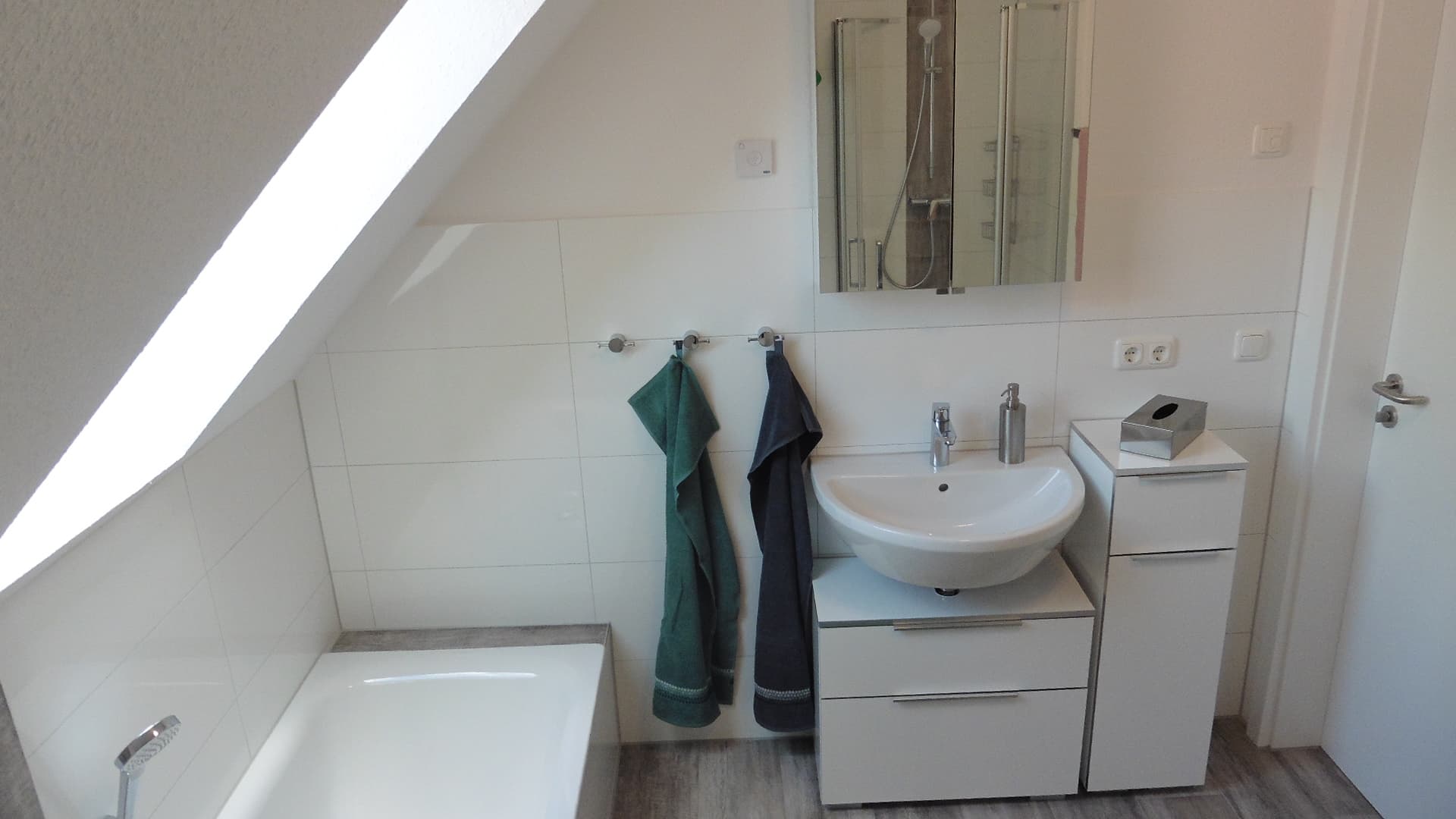 Moderne Ferienwohnung in einer Doppelhaushälfte mit 3 Schlafzimmern für 5 Personen mit Terrasse und Garten.
