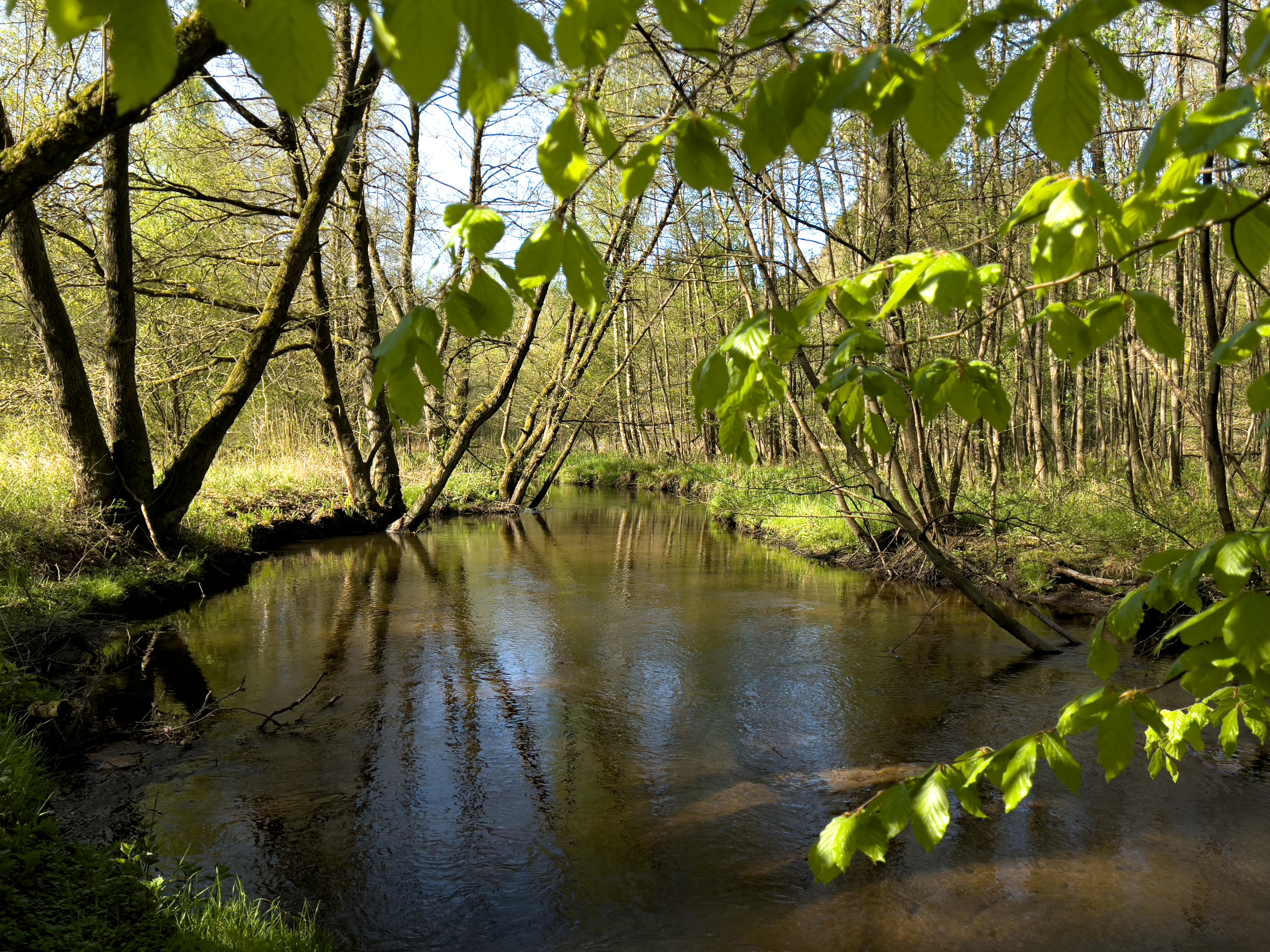 Ich erreiche Poitzen. Zwei für dieses Wetter absolut zu warm angezogene „Herrschaften“ sitzen auf einer Holzbank und begrüßen mich am Einstieg zum FlussWaldErlebnisPfad, der jetzt an der Örtze entlangführt. Rückblickend sicherlich eines der Highlights der Wandertour. Hier plätschert es wirklich an zahlreichen Stellen! Die Landschaft ist spannend und die interessante Flora und Fauna rechts und links des Weges lenkt leicht ab. Auf dem Weg liegen einige „Stolpersteine“ in Form von Wurzeln, also Augen auf - sonst gibt es ein „Waldbad“ der besonderen Art.Ein Bewohner dieser Region taucht anscheinend gerne mal hier ab. Eine wirklich liebevoll gestaltete Schautafel informiert über den „Papagei des Nordens“, den Eisvogel. Leider kann ich den bunten Gesellen nicht entdecken, aber das ist ein guter Grund hierher zurückzukommen und Zeit mitzubringen. Vielleicht klappt es ja dann mit einer Beobachtung. Vorbei an einer Freifläche, die gerade wieder aufgeforstet wird, geht es an der Örtze weiter Richtung Müden. Braune Kühe auf Weide, Enten auf der Örtze und dann kommt auch schon die überall erwähnte und sehr gut ausgeschilderte Umleitung. Eigentlich geht es über eine kleine Brücke Richtung Heidesee, aber aktuell ist dieser Weg gesperrt. Die gut sichtbare Beschilderung führt durch den Ort. Vorbei an sehr schönen Gärten komme ich dann doch noch an den Heidesee, wo einige Bänke zur Rast einladen. Ich gehe allerdings ein kleines Stück weiter und mache Pause an der Touristen-Information. Das ist der eingangs erwähnte reguläre Startpunkt dieser Heideschleife.