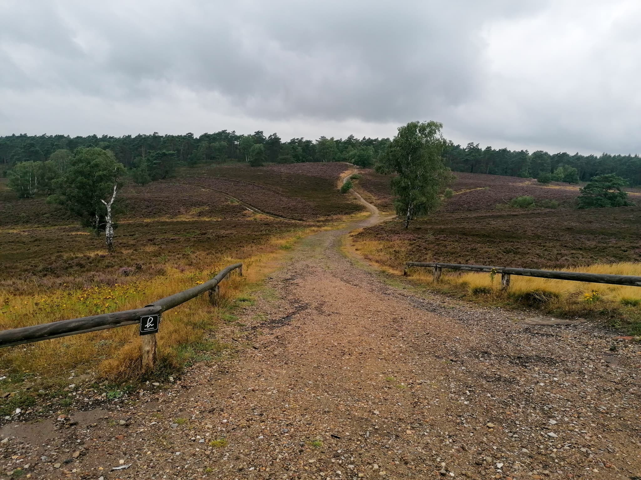 Etwa gegen 10 Uhr kommen wir auf dem noch leeren Wanderparkplatz an und machen uns, nach einem kurzen Blick auf die Infotafel, auf den Weg hinein in die Heide.