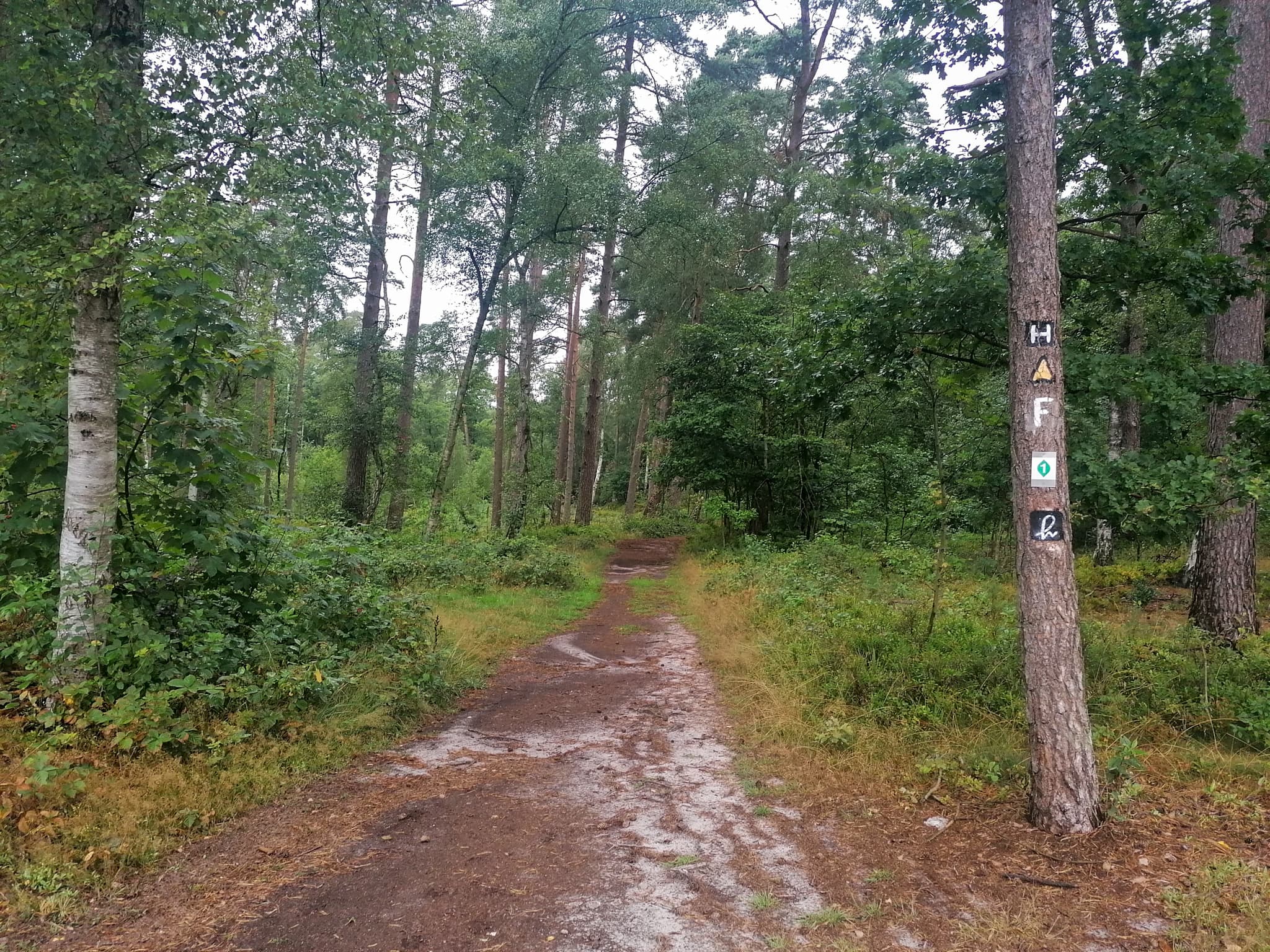 Links und rechts die großen Kiefern und Tannen, am Boden die Baumwurzeln und der vom Regen durchnässte Waldboden. Bei dieser Wetterlage auf jeden Fall der anspruchsvollste Teil des Weges, denn er führt immer wieder auf und ab.