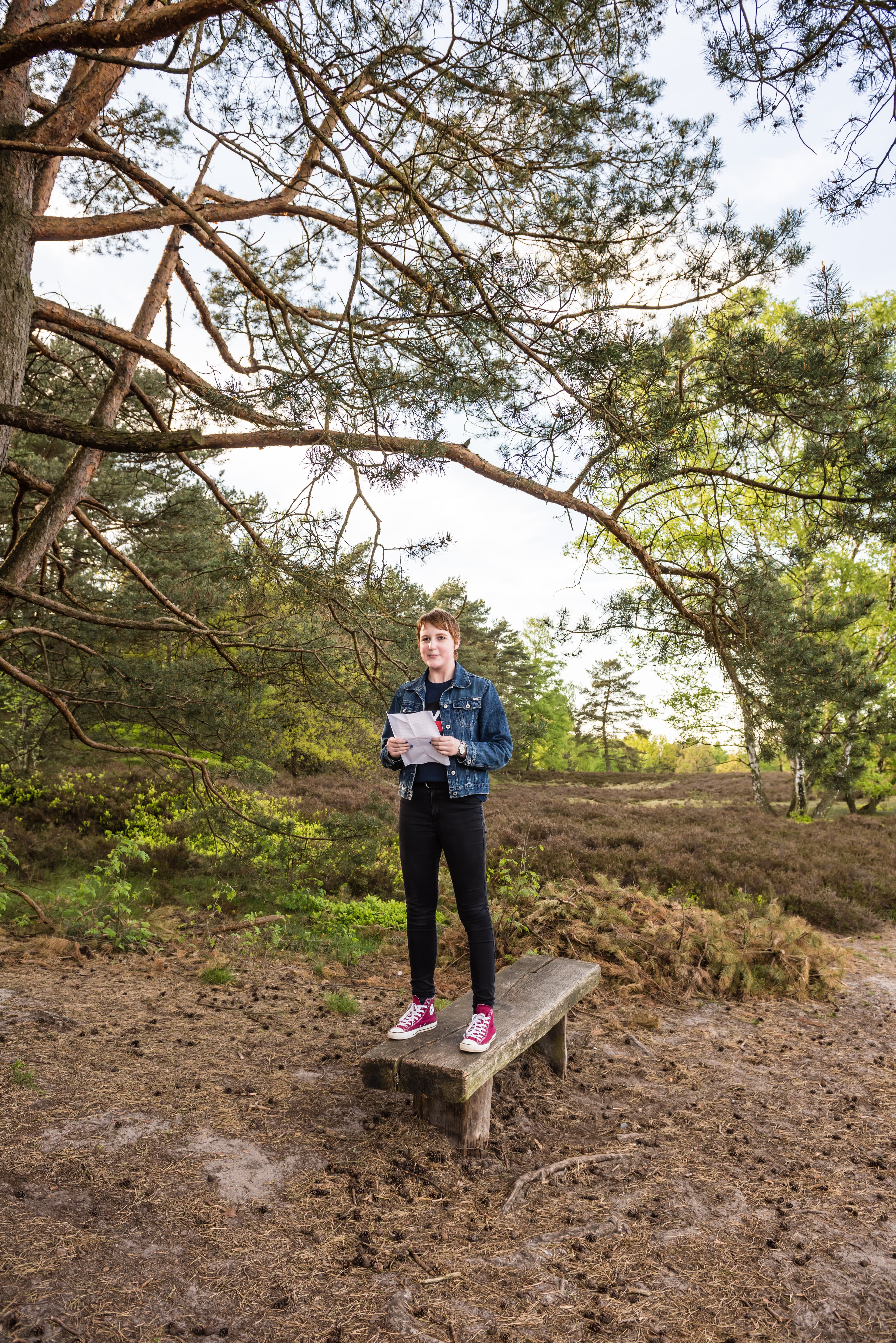 Die malerische Kulisse der Fischbeker Heide und die wundervolle Stimmung der untergehenden Sonne setzten die Darbietungen der Poetry Slammer besonders schön in Szene. Und so lauschte man gespannt ihren Worten, die uns mitnahmen in die Natur, zu Insekten auf frischen Knospen, knalllila Heide auf sanften Hügeln, rauschendem Wind in bunten Blättern und Schneekristallen auf Wacholdersträuchern.