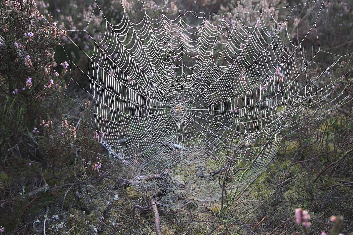 Nebel verschleierte die Heideflächen und die Bäume. Zahlreiche vom Tau benetzte Spinnennetze waren zwischen den Heidepflanzen sichtbar. Es wirkte geheimnisvoll und auch ein wenig unheimlich. Insbesondere an dem moorigen Pastorenteich. Meine Tochter fand es großartig, sie hüpfte und sprang umher. Ich glaube sie fühlte sich wie bei „Harry Potter“.