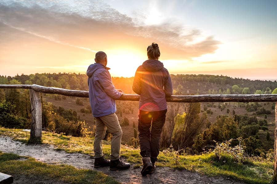 Nutzen Sie die Zeit, um sich von der Schönheit des Weges zu überzeugen. Hier finden Sie alles, wofür die Lüneburger Heide steht. Wacholder, weite Heideflächen, Ruhe, Birken und schmale Heidebäche. Dazu lassen sich an der Strecke sogar Wildpferde entdecken! Abschließend kann man in einem der Heideorte Wilsede, Döhle oder Undeloh in gemütlicher und idyllischer Atmosphäre einkehren.