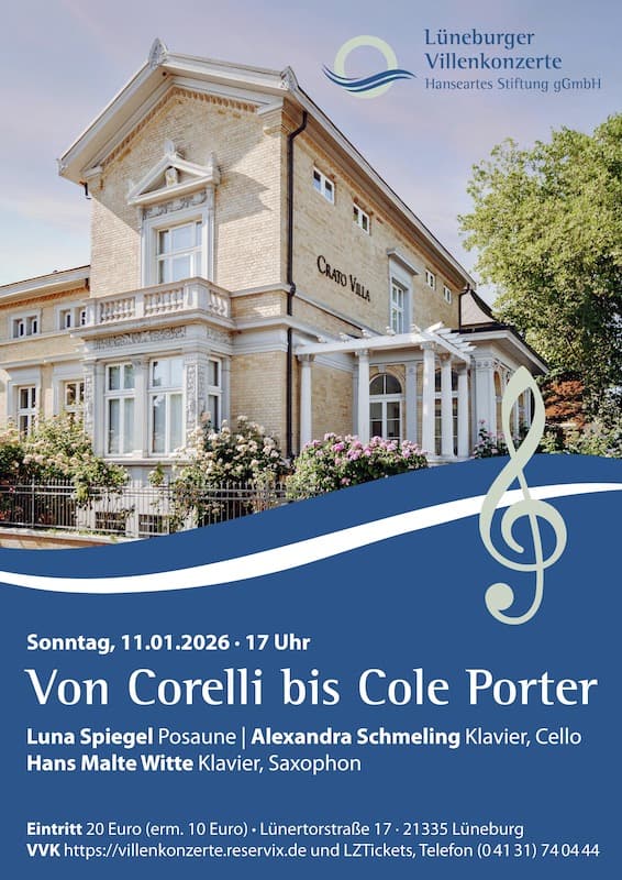Die Posaune im Mittelpunkt eines Kammermusikkonzerts? Muss man erleben! Luna Spiegel (Posaune), Alexandra Schmeling (Klavier und Violoncello) und Hans Malte Witte (Klavier und Saxophon) zeigen die vielfältigen Spielmöglichkeiten der Posaune in einem abwechslungsreichen Programm mit Werken von Arcangelo Corelli, Lars-Erik Larsson, Antonio Carlos Jobim und Cole Porter.