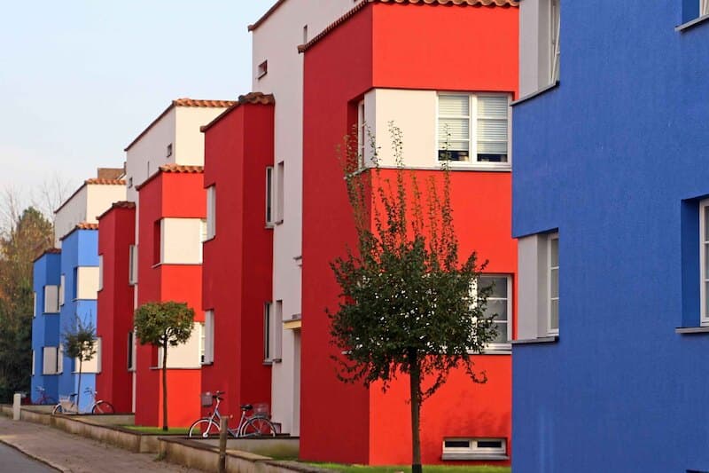 Italienischer Garten mit seinen blau/roten Kuben – der erste Siedlungsbau überhaupt!