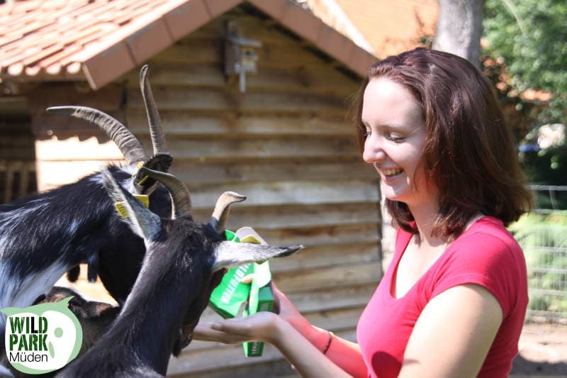 Im Streichelzoo mit Ziegen können die kleinen und großen Besucher nicht nur gucken, sondern auch anfassen. Spezielles Tierfutter zum Füttern erhalten Sie an der Kasse.