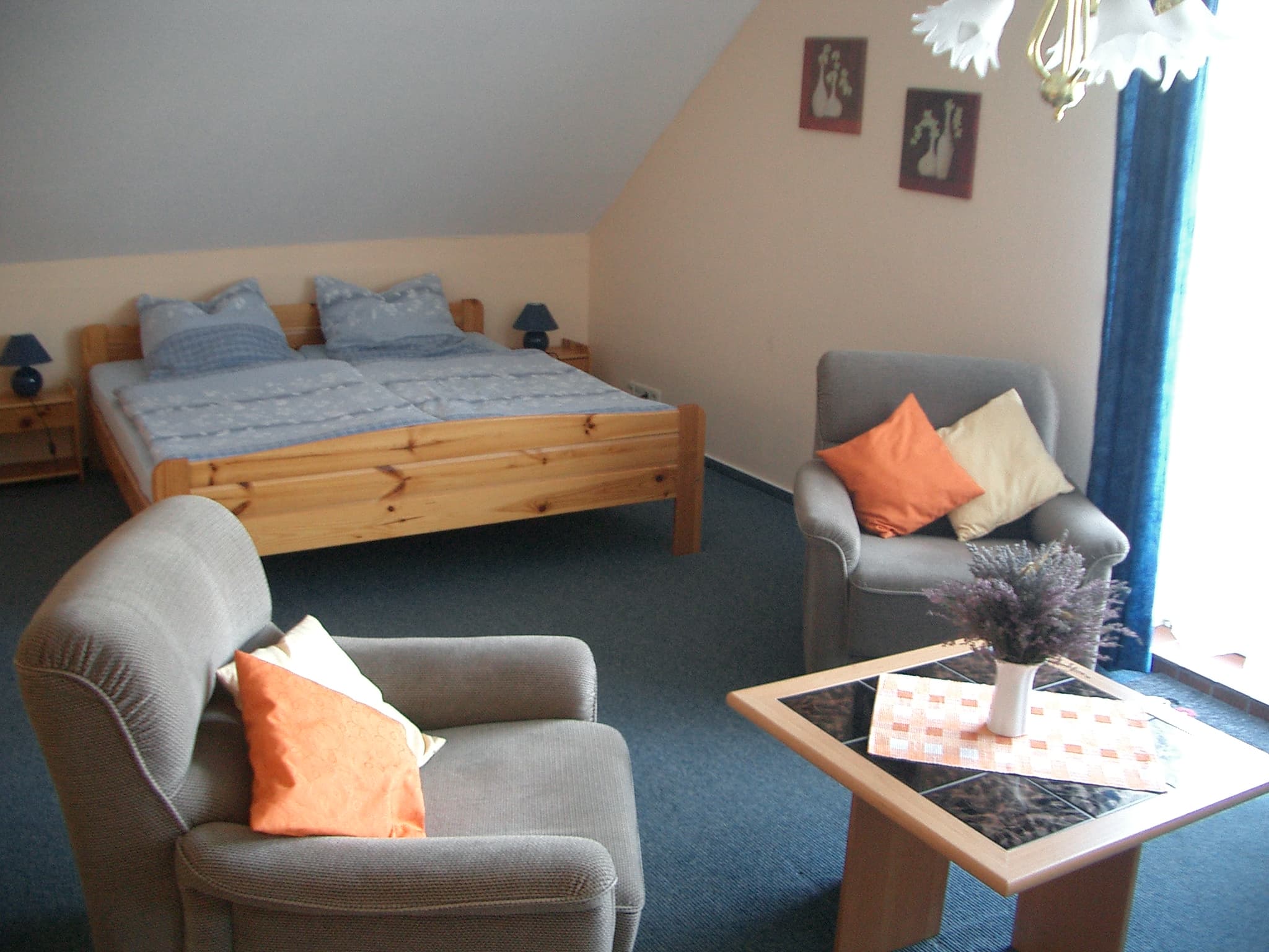 Unser 1-Zimmer-Appartement (40qm) für max. 2 Personen ist ausgestattet mit einem Badezimmer mit Badewanne, Einbau-Küche mit Essecke, Wohn-/Schlafbereich und einem Balkon.