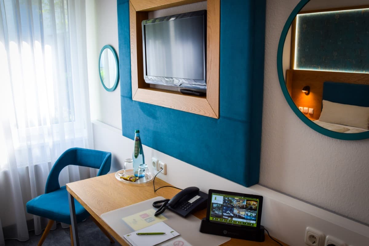 Alle Hotelzimmer sind ausgestattet mit einem Schreibtisch und einer Sitzgelegenheit, TV/LCD-Monitor, Tablet mit Telefonfunktion, WLAN, einem Bad mit Dusche/WC und Haartrockner. Außerdem verfügen alle Zimmer über ein Tablet, auf denen alles Wichtige und Wissenswerte über uns und unsere Region zu finden ist. Die Zimmer haben unterschiedliche Design-Einrichtungen.