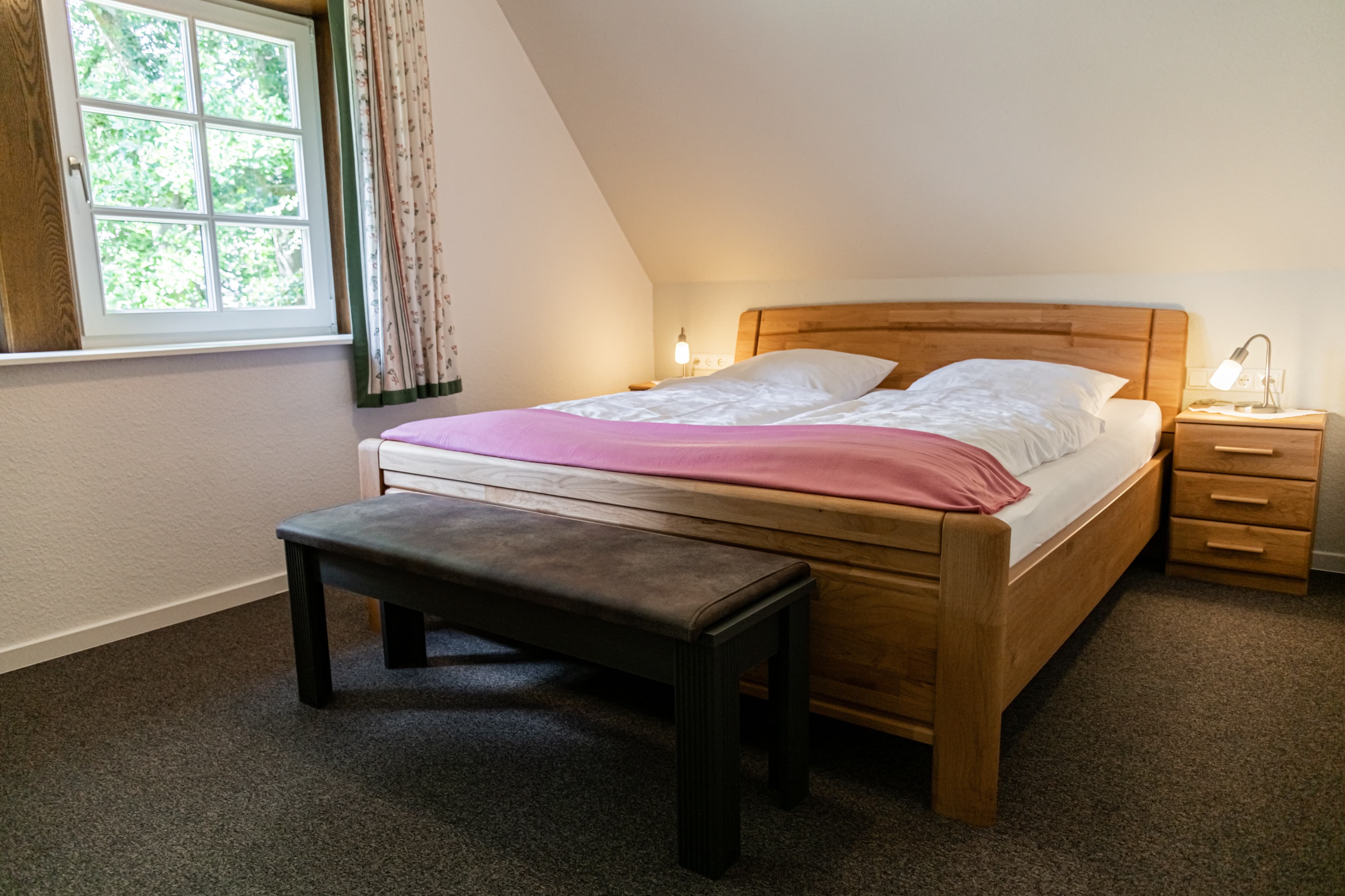 - 1 Schlafraum für zwei Personen. (Doppelbett).