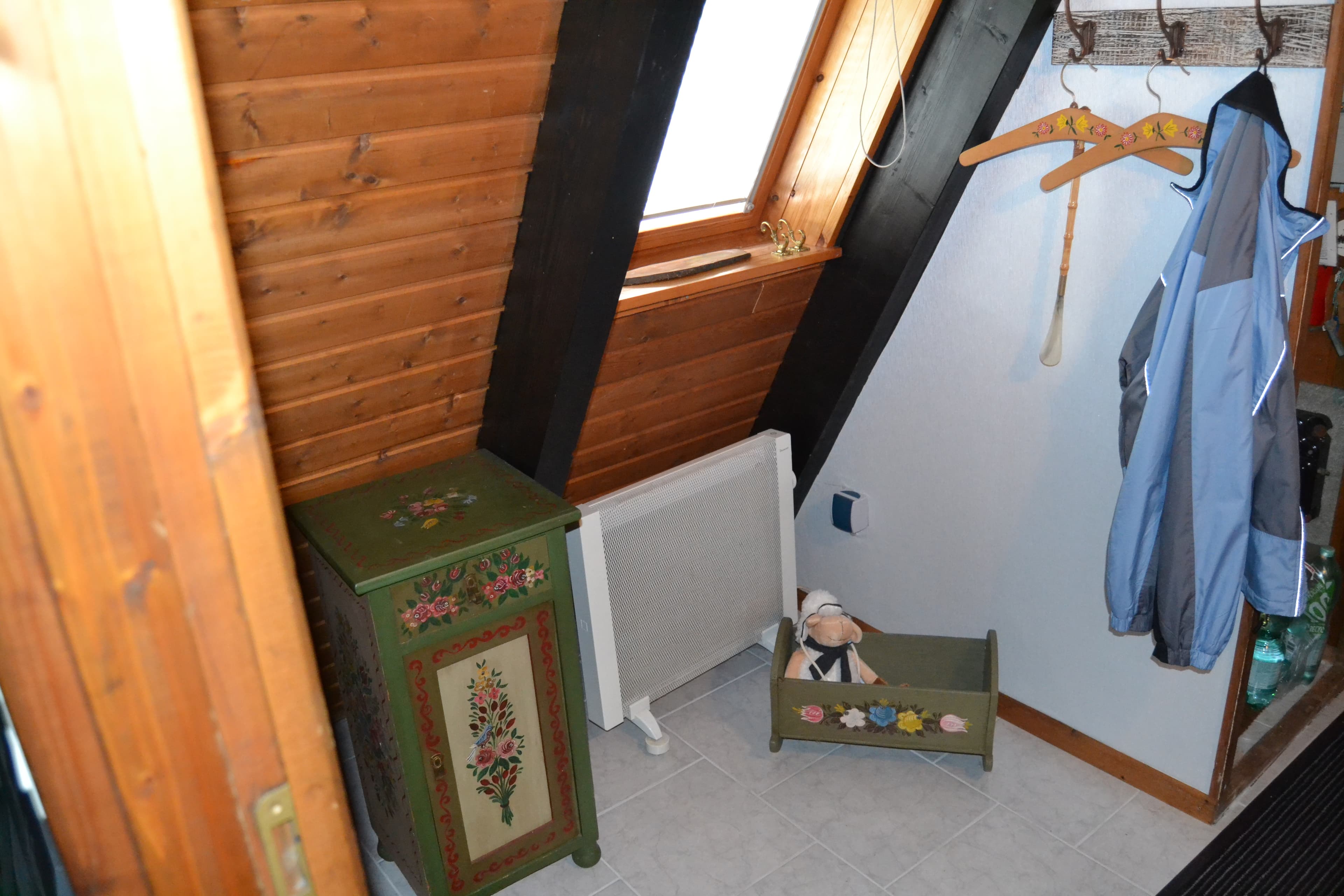 2 Schlafräume oben, Küche, DU/WC, Ess-/Wohnzimmer (Sat-Flat-TV, Hifi-Anlage), Terrasse, Liegewiese mit Grillplatz. Kaminofen für romantische Stunden, komplett eingerichtete Küche mit Spül-und Waschmaschine.
