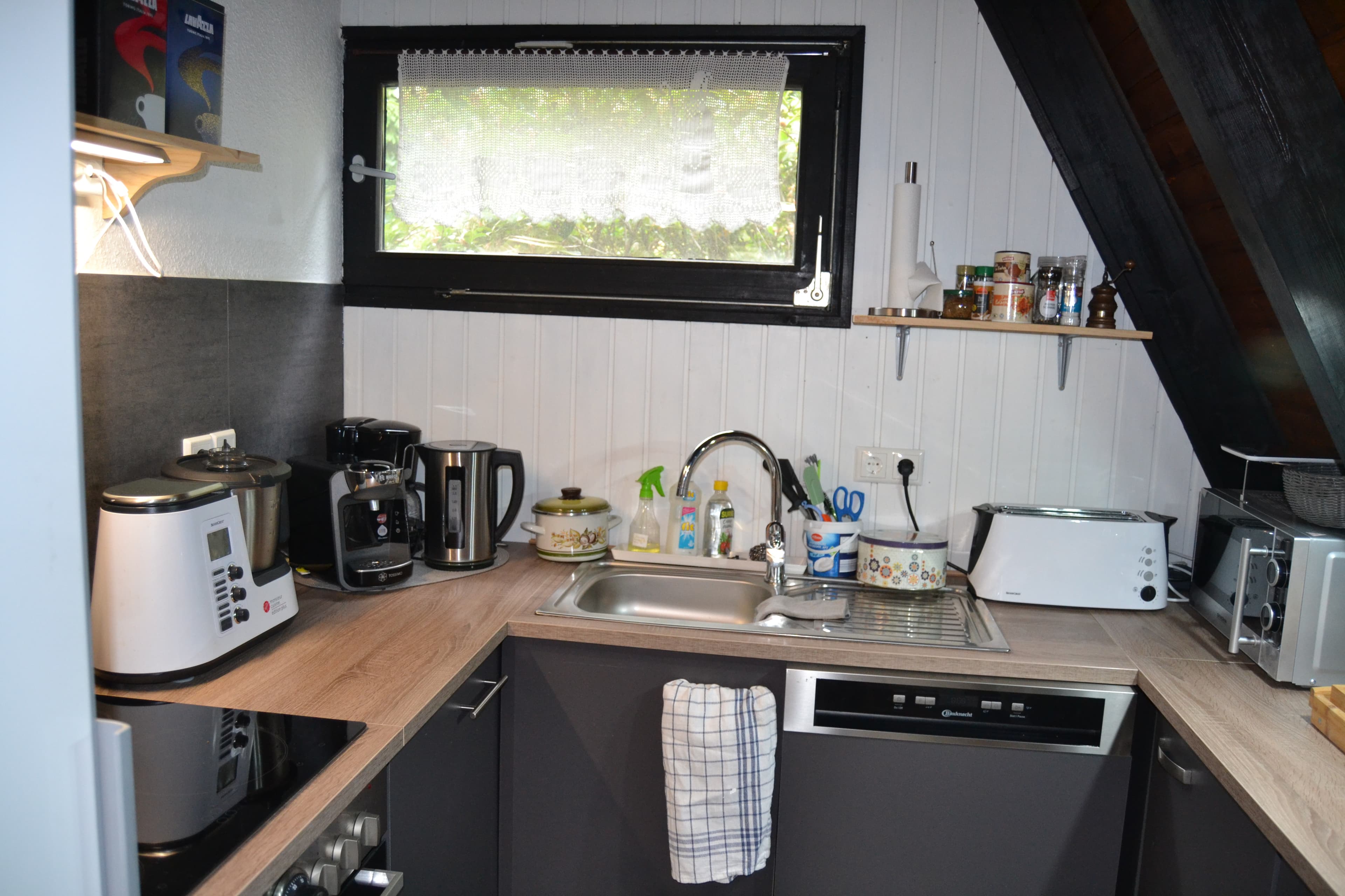 Musikanlage, Kaffeemaschine und Tassimo.